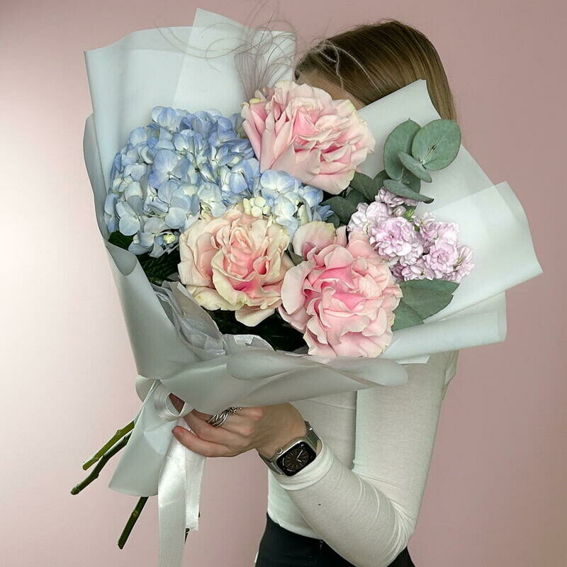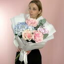 Buket iz gortenzii i frantcuzskih roz «Akvarel_»
