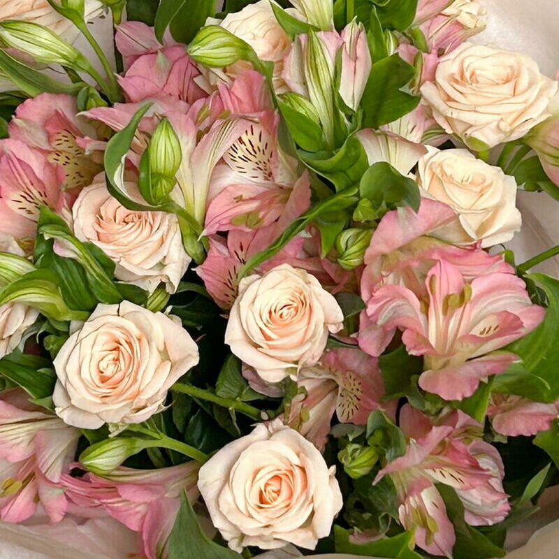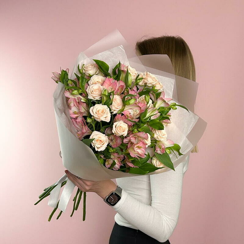 Buket s kustovimi rozami i al_stromeriej
