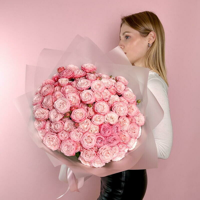 - Ob_emnij premium buket iz pion kustovih roz