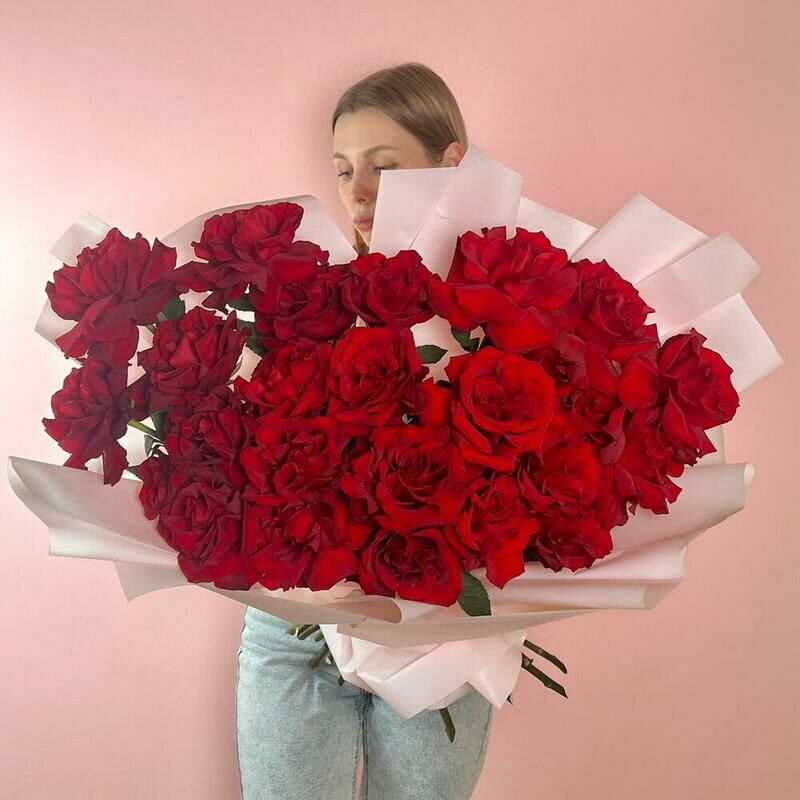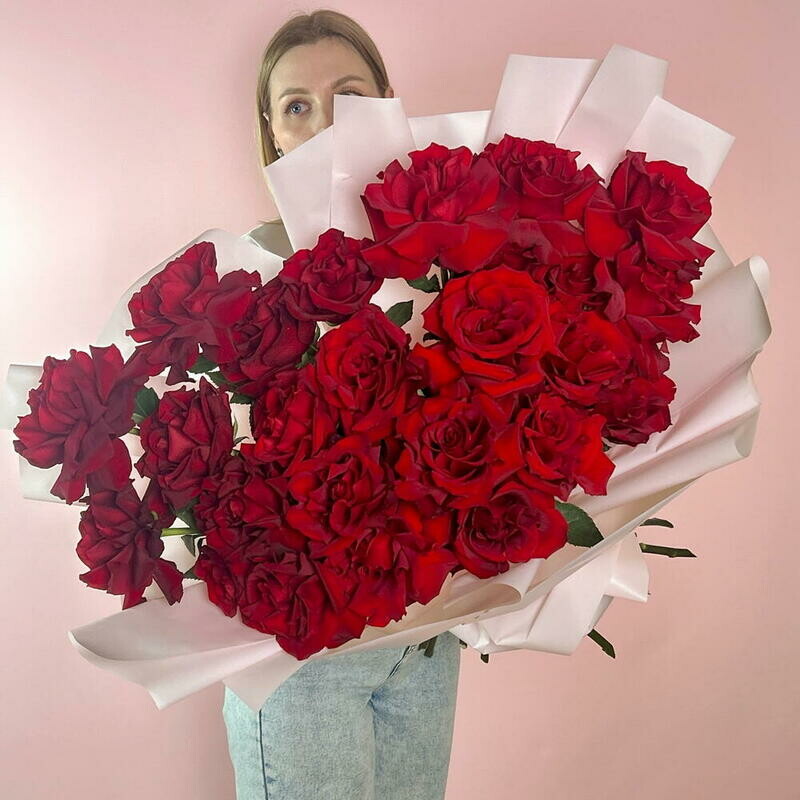 - Bol_shoj buket shikarnih krasnih frantcuzskih roz