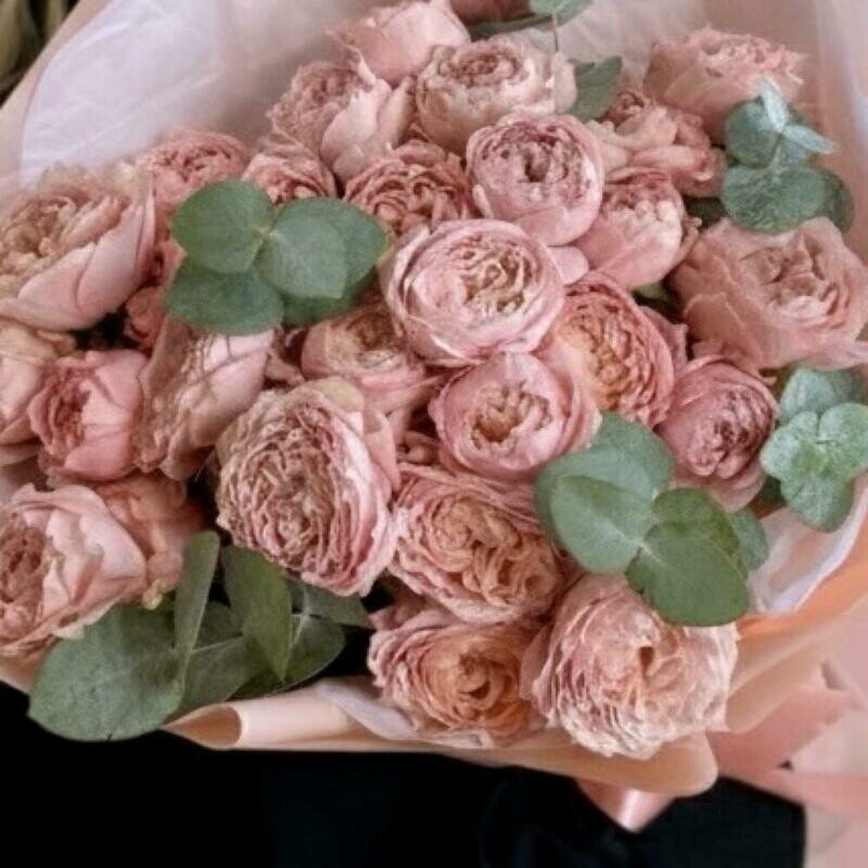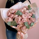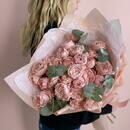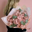 - Buket iz pionovidnoj kustovoj rozi v nezhnih ottenkah