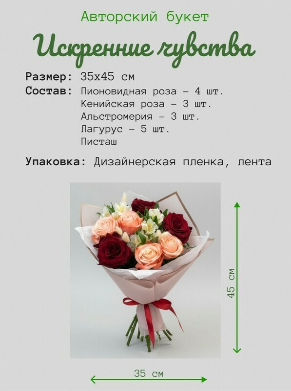 - Buket s pionovidnimi rozami "Iskrennie chuvstva"