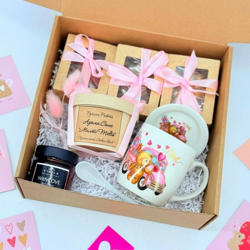 Podarochnij orehovij boks s keramicheskoj kruzhkoj, aroma sashe melts i svechoj ruchnoj raboti