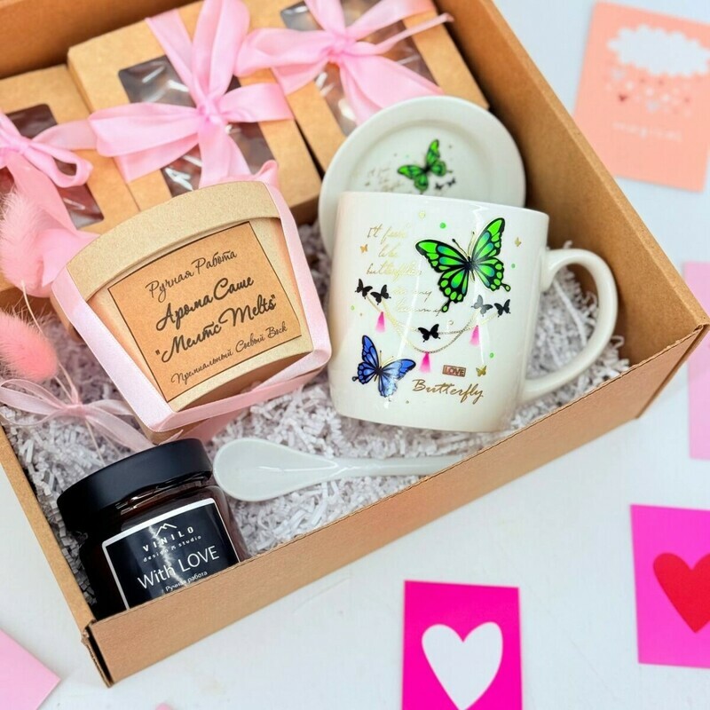 Podarochnij nabor dlya devushki s orehami, kruzhkoj, aroma sashe melts i svechoj ruchnoj raboti, standart