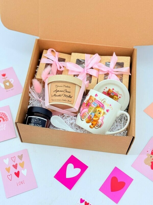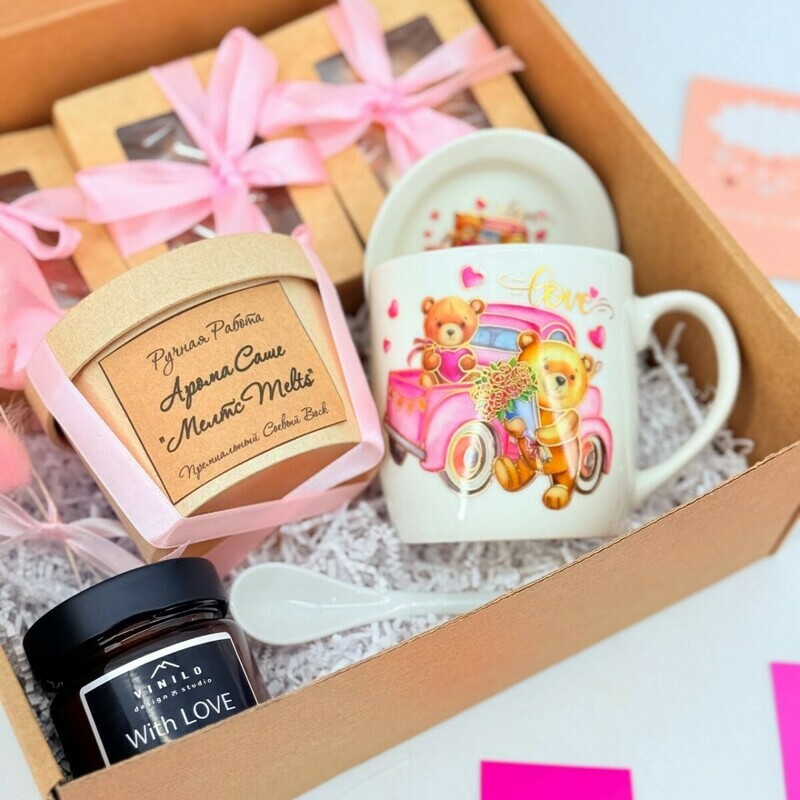Podarochnij nabor sladkih orehov s kruzhkoj, aroma sashe melts i svechoj v banke ruchnoj raboti, standart