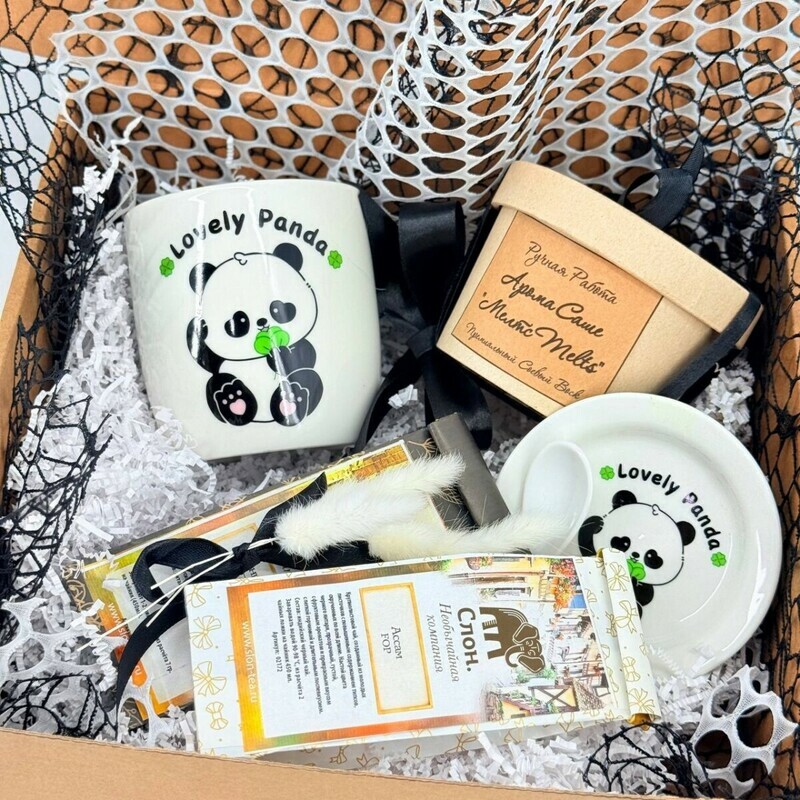 Podarochnij nabor elitnogo chaya s keramicheskoj kruzhkoj panda i aroma sashe melts ruchnoj raboti