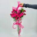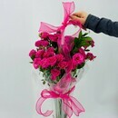 Buket kustovih roz v zontike. TCveti kustovie rozovie rozi