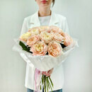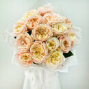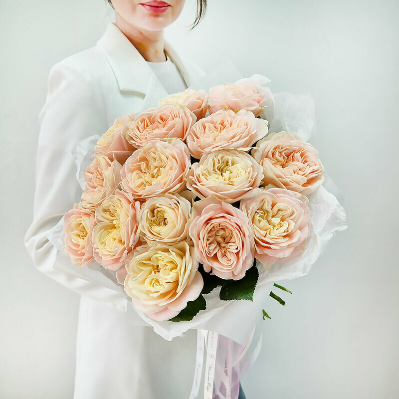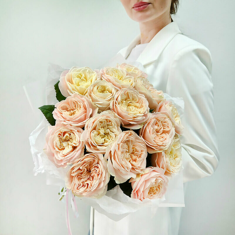 15 pionovidnih roz «Dzhul_etta». Persikovij. Abrikosovij. Zolotistij. Beskonechno nezhnij. Nikakih lishnih tcvetov — tol_ko 15 krupnih butonov, kotorie shepchut o lyubvi gromche samih pilkih priznanij. «Dzhul_etta» — dlya toj, ch_yo serdtce dostojno samoj krasivoj istorii. Podarite persikovuyu nezhnost_.