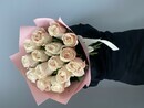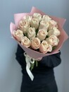 Etot buket — voploshenie nezhnosti i elegantnosti. Kremovo-rozovie rozi s edva ulovimim persikovim otlivom napominayut o pervih luchah rassveta. Takoj buket stanet ideal_nim priznaniem v chuvstvah, iziskannim podarkom na den_ rozhdeniya ili prosto prekrasnim sposobom napomnit_ blizkomu cheloveku o ego isklyuchitel_nosti.