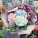 Buket tcvetov iz raznotcvetnoj gortenzii, krashennoj gipsofili, serebristogo evkalipta v dizajnerskoj plenke s lentami. Eti tcveti Vi mozhete podarit_ lyubomu chelovku. Tak zhe povod dlya podarka mozhet bit_ lyuboj.