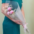 Buket sostoit iz dvuh vidov tcvetov - pionov i gipsofili. Pioni izvestni svoej krasotoj i aromatom, a gipsofila dobavlyaet vozdushnosti i legkosti kompozitcii.