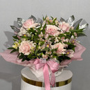 Neobichnij i ekstravagantnij buket priyatno udivit i vpechatlit lyubuyu devushku, zhenshinu. Buket oformlen v pletyonuyu korzinu ruchnoj raboti i sostoit iz rozovih frantcuzskih roz, al_stromerij, orhidej.