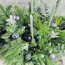Zimnij buket kompozitciya iz zhivoj hvoi nobilis, kiparis, mozhzhevel_nik so svechami. Novogodnij dekor, standart