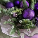 Novogodnij buket iz natural_noj hvoi nobilis, kiparis, mozhzhevel_nik v shlyapnoj korobke. Zimnij buket, standart