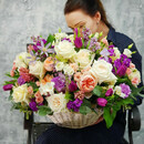 SHikarnaya bol_shaya korzina iz pionovidnih roz, klematisa i mattioli porazhaet voobrazhenie svoej utonchennoj iziskannost_yu i neobichnost_yu sochetanij tcvetov i faktur. SHikarnij podarok na yubilej, na den_ rozhdenie, kak prezent vazhnomu rukovoditelyu. Takuyu shikarnuyu korzinu mozhno podarit_ ot litca kompanii, tak zhe ona ocharuet i samogo blizkogo, lyubimogo cheloveka. Darite radost_ vashim lyubimim.