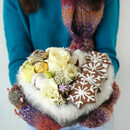 Nezhnij belij buket v korobke podnimaet nastroenie i raduet nakanune Novogo goda. Darite vashim blizkim i druz_yam podarki, ne zabud_te peredat_ im privet.