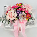 Neobichnij i ekstravagantnij buket priyatno udivit i vpechatlit lyubuyu devushku, zhenshinu. Buket oformlen v original_noj upakovke i sostoit iz frantcuzskih roz, orhidei, al_stromerii, kustovoj rozi, dopolnen list_yami paporotnika i sushyonim lotosom.
