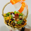 YArkaya korzinka s suhofruktami, i vkusno i krasivo. Buket iz suhofruktov idealen v kachestve komplimenta.Takim s_edobnim buketom mozhno poradovat_ lyubimuyu devushku, mamu, babushku, uchitelya, muzhchinu. Glavnoe preimushestvo etih vkusnih buketov- ih dlitel_nij srok hraneniya! Osobenno ponravitsya tem kto priderzhivaetsya pravil_nogo pitaniya!