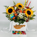 Mi predlagaem prepodnesti krasivij podarok, buket tcvetov v v korobke syurpriz, s nezhnejshimi pirozhnimi makaruns.