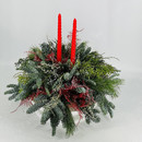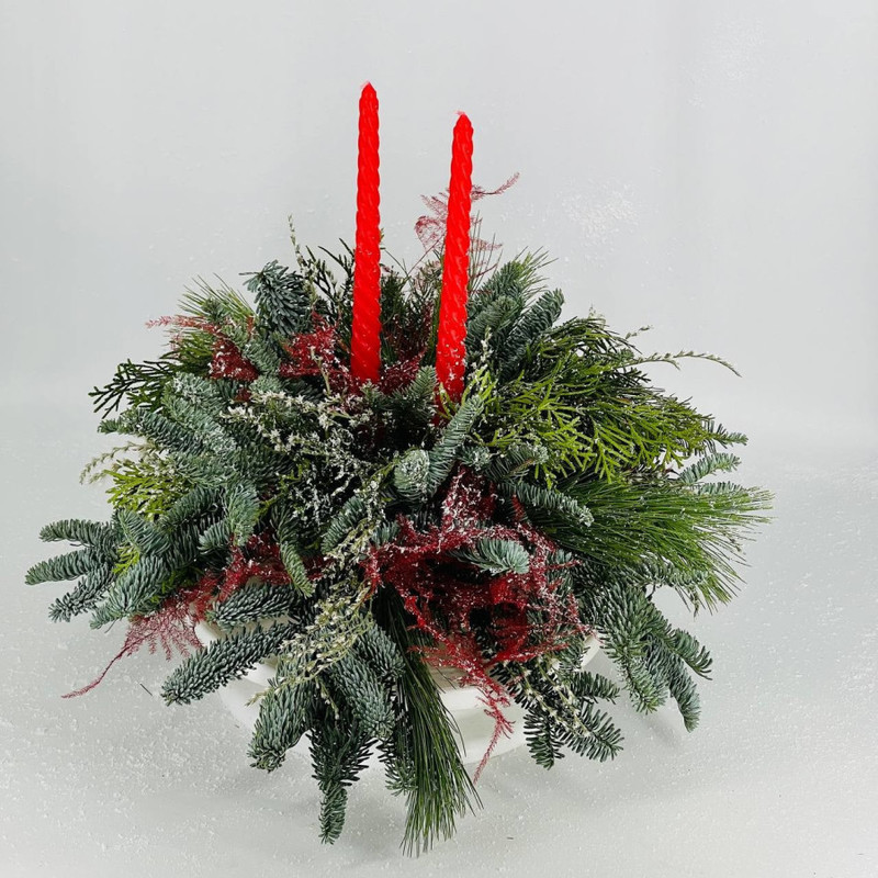 Takaya kompozitciya budet otlichno smotret_sya v restorane, kafe, galeree i lyubom drugom pomeshenii obshestvennogo pol_zovaniya. Novogodnyaya kompozitciya na stol iz natural_noj hvoi, so svechami, stanet ideal_nim dopolneniem k novogodnemu stolu.