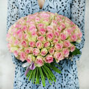 Buket iz 101 nezhno-rozovoj rozi Keniya 40 sm.