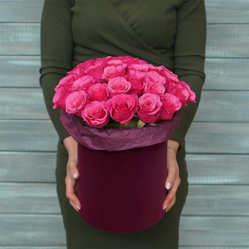 29 malinovih roz v shlyapnoj korobke, Keniya, standart