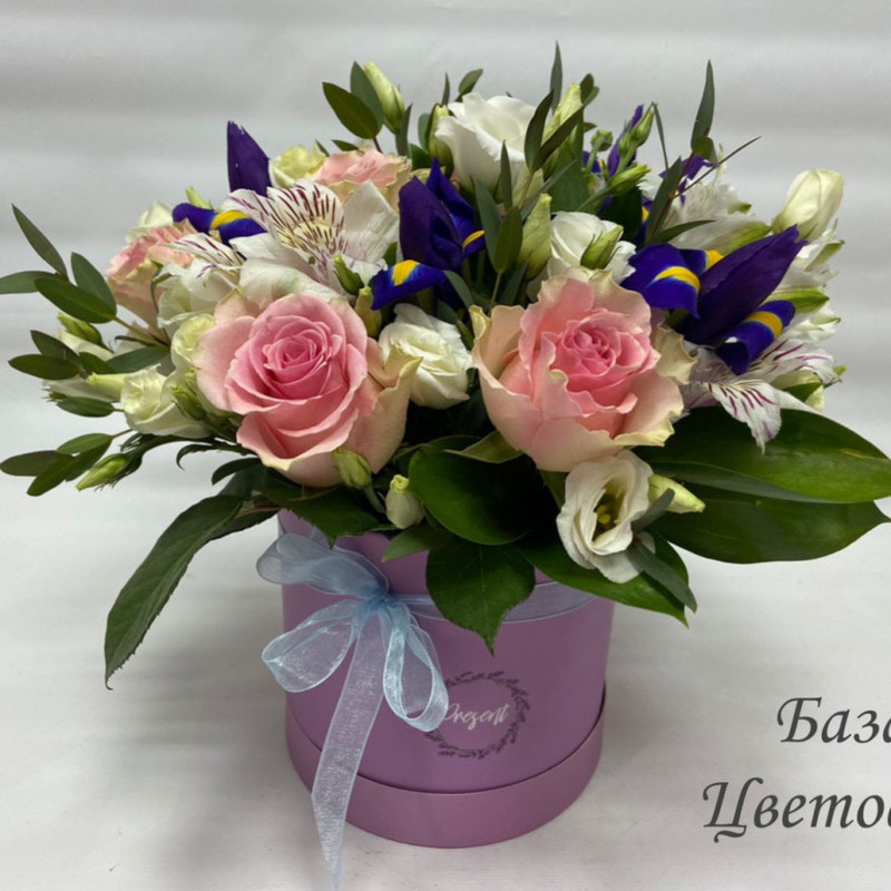 Korobka s rozoj, al_stromeriej, eustomoj, irisami (Korobka 30)