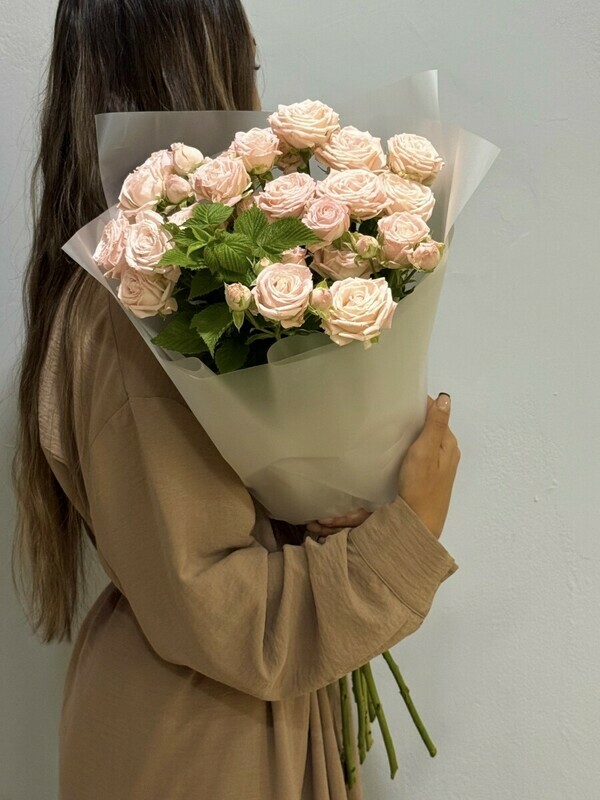 Etot nezhnij i iziskannij buket vklyuchaet v sebya krasivie rozi i svezhuyu zelen_, kotorie prekrasno dopolnyayut drug druga. Oni upakovani v stil_nuyu avtorskuyu upakovku, kotoraya podcherkivaet ih krasotu i nezhnost_. Etot buket stanet prekrasnim podarkom dlya lyubogo povoda i poraduet svoego poluchatelya svoej elegantnost_yu i iziskannost_yu.