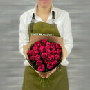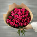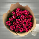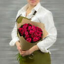 Buket iz 21 malinovoj rozi v krafte Keniya 40 sm.