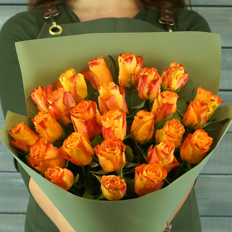 23 oranzhevie rozi v upakovke Keniya 40 sm.