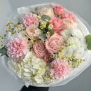 - Nezhnie kremovie pionovidnie rozi s gortenziej i romashkoj