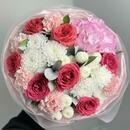YArkie rozovie rozi s gortenziej i hrizantemoj