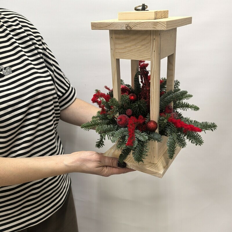 - Novogodnyaya kompozitciya v derevyannom fonarike