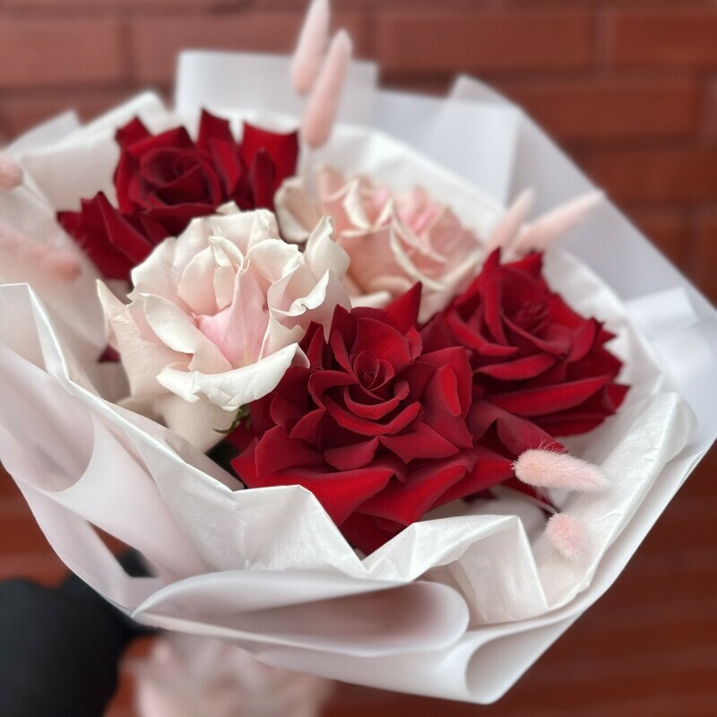 Buket miks iz rozovih i bordovih frantcuzskih roz