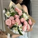 Buket iz pionovidnih nezhnih roz i belih vozdushnih al_stromerij v nezhnom oformlenii