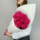 Buket iz 7 yarko-malinovih roz v upakovke