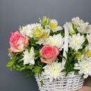velikolepnaya korzina iz hrizantem, al_stromerij i nezhnih roz