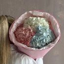 - Pushistij monobuket iz 3 raznotcvetnih gortenzij
