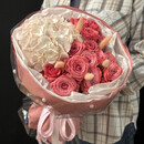 Buket ZHemchuzhina s gortenziej i kustovoj rozoj, standart
