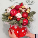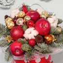 - Novogodnyaya kompozitciya v korobochke s yablokami i sharikami