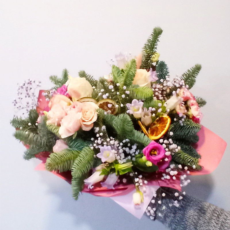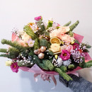 Zimnij buket s matioloj i rozami