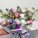 - Zimnij buket s hlopkom, gvozdikoj i rozami