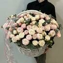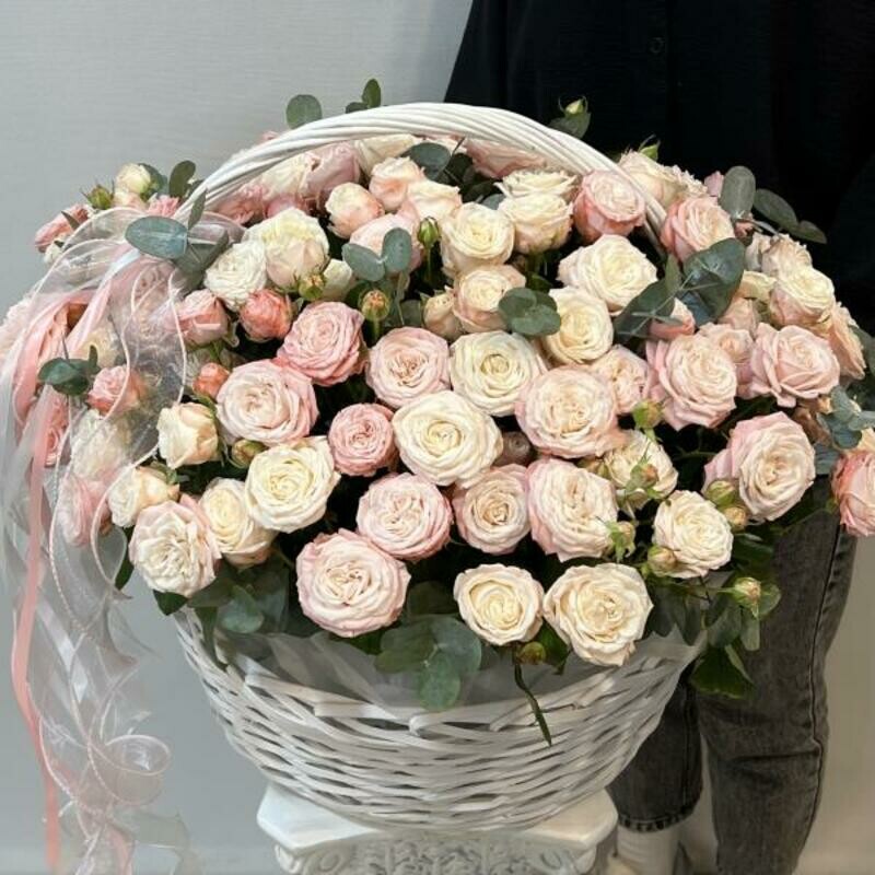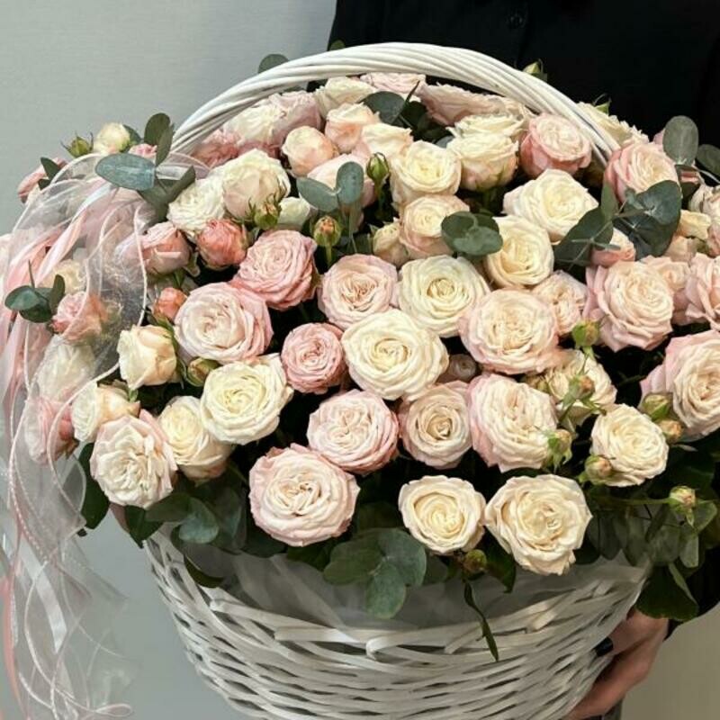 - Korzina 51 kustovaya pionovidnaya roza s evkaliptom