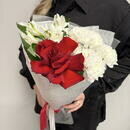 - Buket iz frantcuzskoj rozi, hrizantemi i al_stromerii