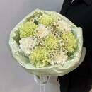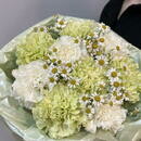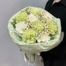 Buket salatovie i belie diantusi s kustovimi romashkami