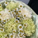 - Buket salatovie i belie diantusi s kustovimi romashkami