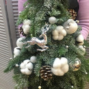 A designer Christmas tree made from branches of fragrant blue spruce and fir, decorated with natural cotton and New Year's decor and a figurine of a silver deer, as if emerging from a snowy forest! Such a tree will certainly create an amazing atmosphere of a fairy tale and magic in the house! Give your loved ones pleasant emotions and smiles!