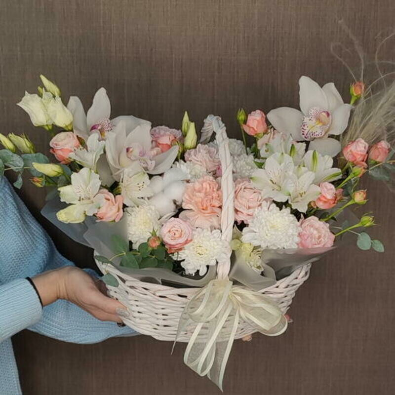 Ocharovatel_nie tcveti v belosnezhnoj korzine - prekrasnij podarok ot vsej dushi lyubimomu cheloveku !