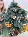 Uyutnaya i aromatnaya yolka, sozdannaya iz zhivih vetochek Nobilisa, ukrashennaya svezhimi apel_sinami, pryanimi barankami i Palochkami koritci. Takaya kompozitciya ne tol_ko krasivo smotritsya, no i napolnyaet pomeshenie teplim vkusom i aromatom prazdnika. Ideal_nij dekor dlya stvoreniya uyuta i prazdnichnogo nastroeniya v dome.