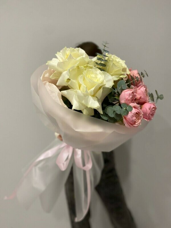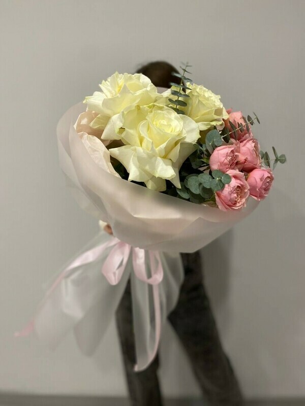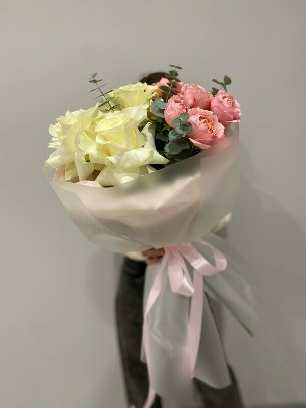 Etot buket — voploshenie utonchennoj zhenstvennosti i nezhnoj romantiki. Belie azhurnie rozi, podobnie tonchajshemu kruzhevu, pridayut kompozitcii vozdushnost_, svet i chistotu. Ih dopolnyayut pishnie rozovie pionovidnie rozi s barhatistimi lepestkami, kotorie daryat oshushenie tepla, nezhnosti i serdechnogo uchastiya. Sochetanie faktur i ottenkov sozdaet ideal_nij balans mezhdu skromnoj elegantnost_yu i myagkoj, trogatel_noj chuvstvennost_yu. Etot buket govorit o voshishenii, iskrennej zabote i samih svetlih chuvstvah.